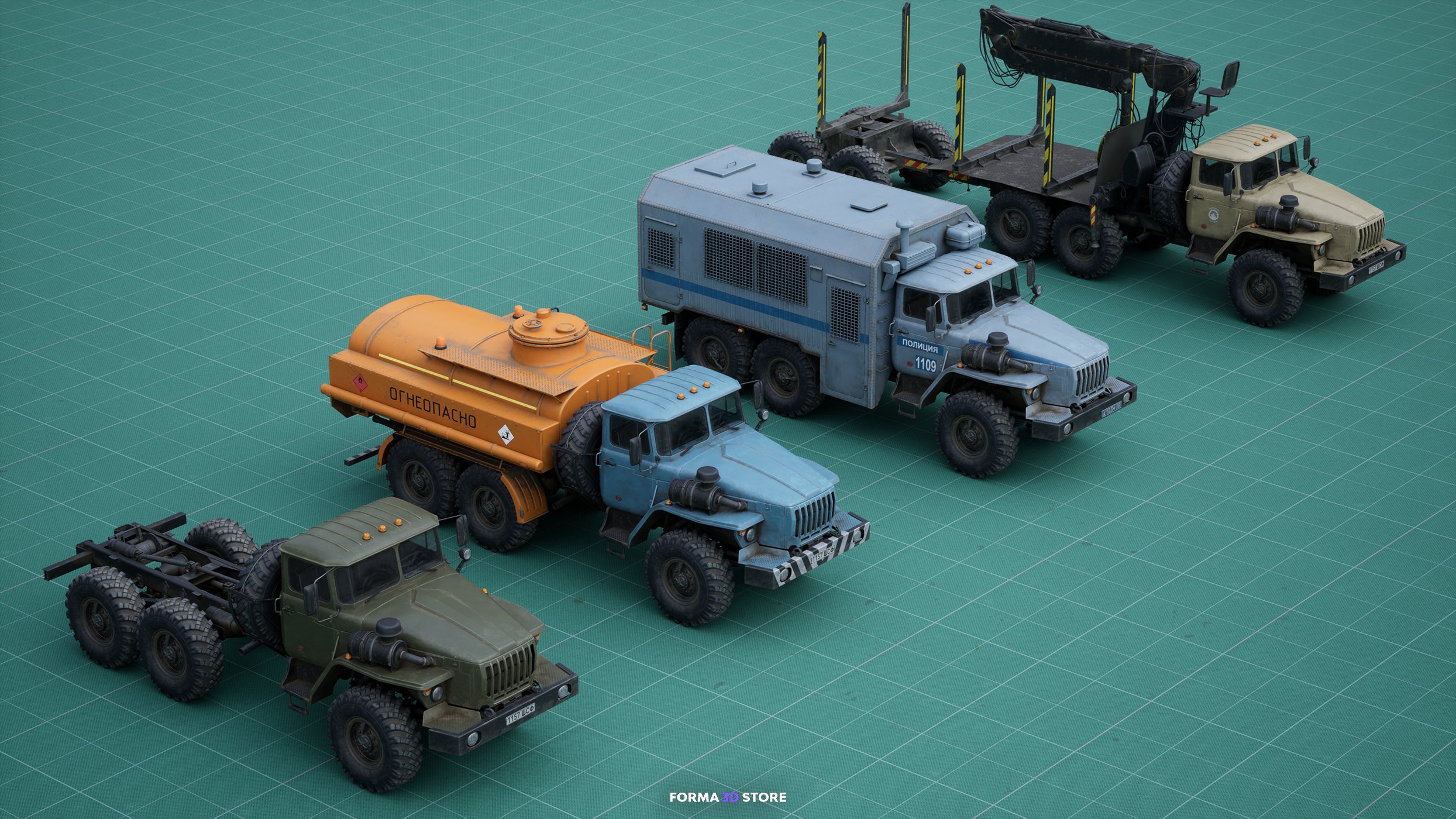 Ural Truck is a highly detailed 3D asset of a heavy-duty 6×6. Every element is carefully crafted, from the cab and chassis to the suspension and exterior accessories. Delivered in four configurations and optimized for VFX and game workflows, Ural Truck serves as a robust foundation for games, films, and simulations, bringing grounded realism and immersive scale to your projects.